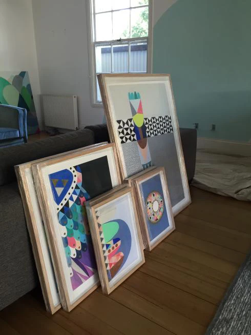 What I loved about the living room treatment was the way you can use paint to create a point of focus along a long wall that might otherwise look a bit sparse. In this case, the leaf shape connects the console with the window. It’s bright enough to make a difference but soft enough so that the ‘Reckless Green’ doesn’t jar against the room’s beautiful colour palette. Take a look at the raft of beautiful artworks our stylist Julia Green had on hand to make sure the Lisa Lapointe we chose in the end was just the right one!